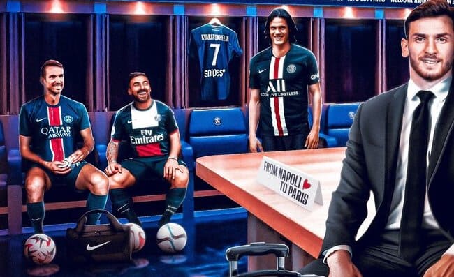 "Da Napoli a Parigi Edinson, Ezequiel, Fabián e Khvicha", è il titolo dell'immagine pubblicata dal PSG sui propri canali social. Nel fotomontaggio sono presenti Ezequiel Lavezzi, Edinson Cavani, Fabian Ruiz, Khvicha Kvaratskhelia. Tutti acquistati dal Napoli.