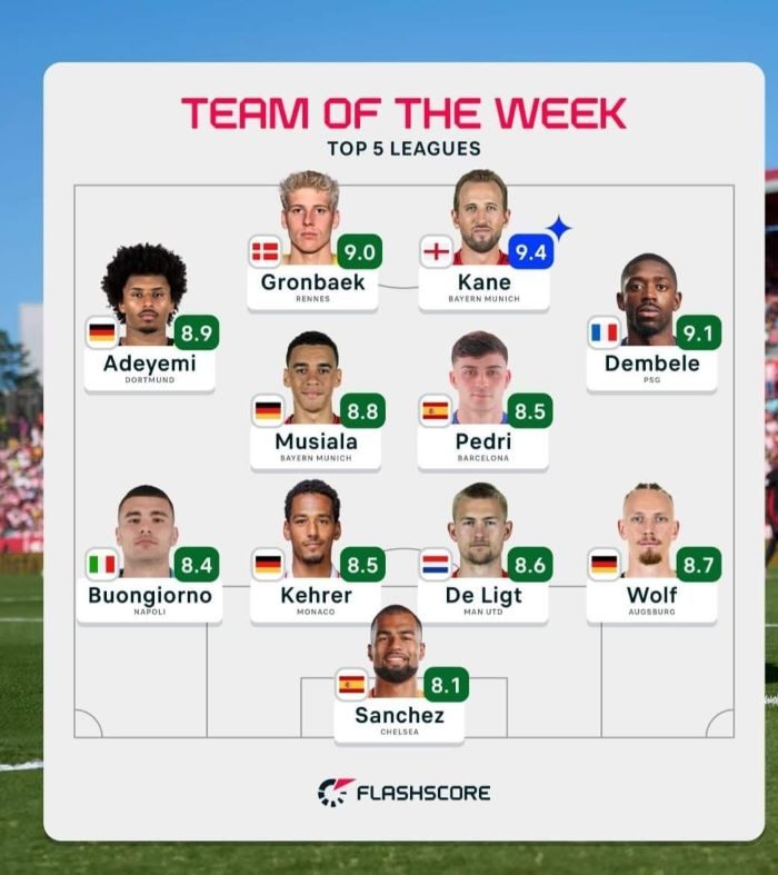 Ecco il grafico che presenta il Team of the Week dei top 5 campionati europei: