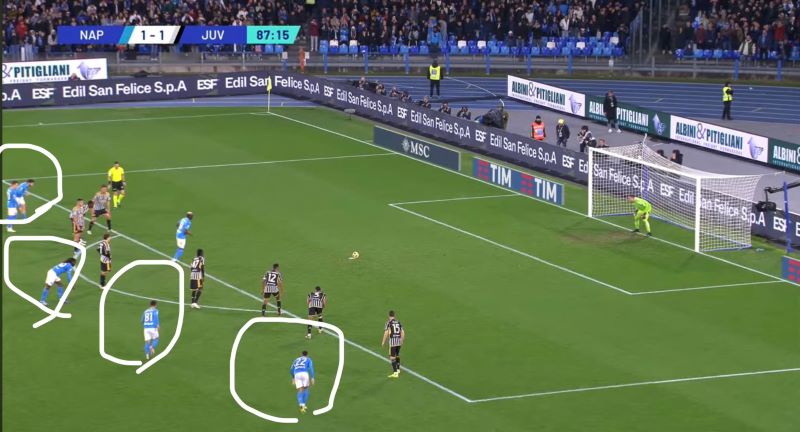 Il tecnico calabrese sembra inoltre aver impartito qualche schema tattico. Ad esempio, è curioso notare che sul rigore di Victor Osimhen, i giocatori anziché partire a ridosso della linea dell'area di rigore - come fanno la maggior parte dei team - e dunque a contatto con i calciatori bianconeri, si siano posizionati più indietro. Evidentemente, è stata una scelta di Calzona per sorprendere la Vecchia Signora, che probabilmente non si aspettava che gli azzurri arrivassero così veloci sulla ribattuta.