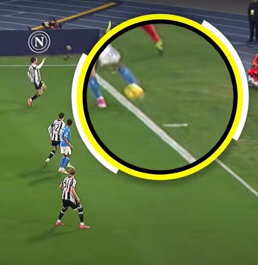 Ekkelnkamp davvero voleva calciare da una posizione simile? No. Anche la postura ci dice che la sua intenzione era scodellare al centro per Lucca. Dal campo si è visto subito che quella traiettoria non era voluta e che è possibile ottenerla solo grazie a questi palloni moderni (ha ricordato vagamente un gol che fece Mauri nello stesso angolo in un leggendario Napoli-Lazio 4-3, anche se la dinamica è totalmente diversa).