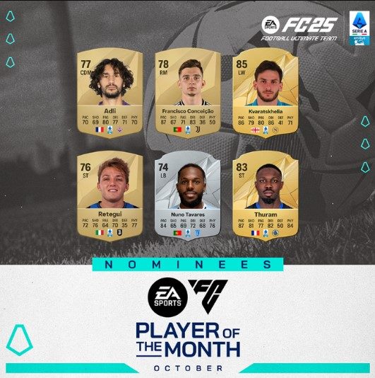 Con 4 presenze, 2 gol, 250 minuti giocati edil 81% di passaggi riusciti, il numero 77 partenopeo contende il titolo ad altri cinque giocatori: Yacine Adli, centrocampista della Fiorentina (in prestito dal Milan); Francisco Conceicao, ala della Juventus; Nuno Tavares, esterno di sinistra della Lazio; Mateo Retegui, punta dell'Atalanta e miglior marcatore del campionato; ed il francese Marcus Thuram, attaccante dell'Inter. Sul sito di EA Sports FC25 è possibile votare, nella sezione dedicata, per esprimere il proprio gradimento.