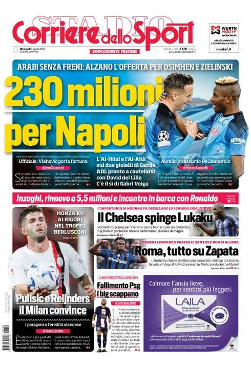 PRIMA PAGINA CORRIERE - 230 milioni per il Napoli: arabi senza freni