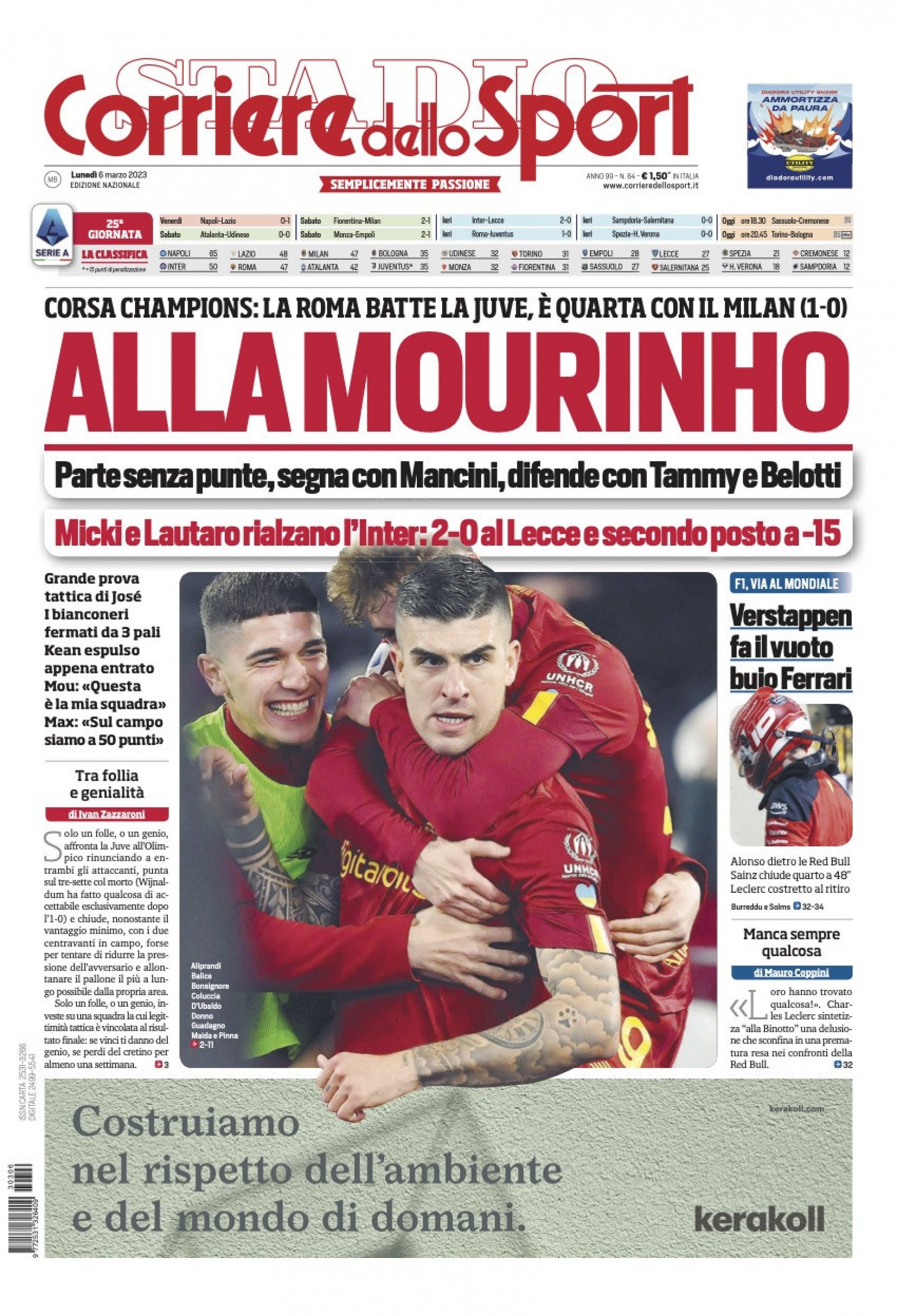 PRIMA PAGINA CORRIERE - Alla Mourinho. Grande prova tattica di José