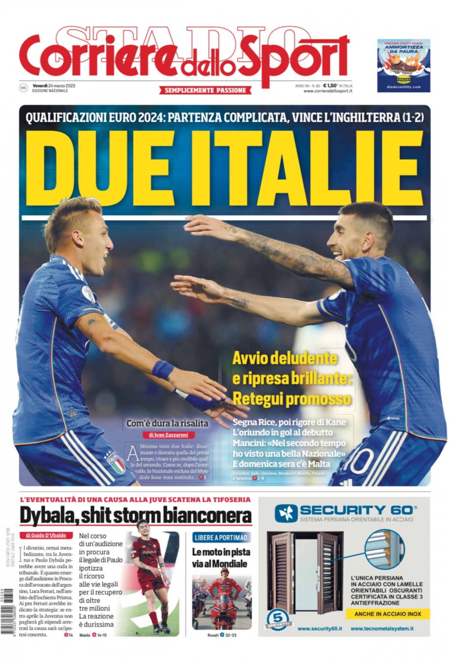 PRIMA PAGINA CORRIERE - Due Italie. Retegui promosso