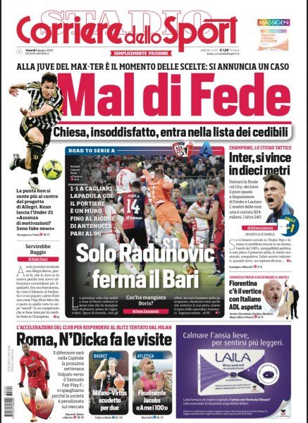 La prima pagina del noto quotidiano si sofferma sui temi più caldi del momento relativi al calcio italiano e non solo.