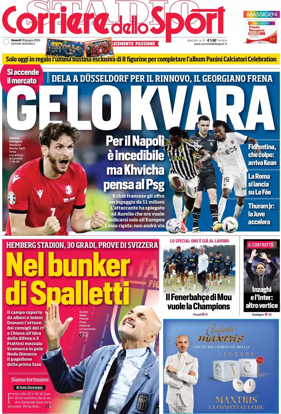 Sono tanti gli spunti che arrivano dalla prima pagina del Corriere dello Sport. Il noto quotidiano si sofferma su alcuni degli argomenti più caldi del momento. Ecco alcuni titoli dell'ultima edizione: "Gelo Kvara. Per il Napoli è incedibile, ma Khvicha pensa al PSG" si legge sul giornale.