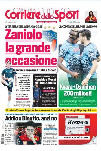 PRIMA PAGINA CORRIERE - Kvara+Osi: 200 milioni!