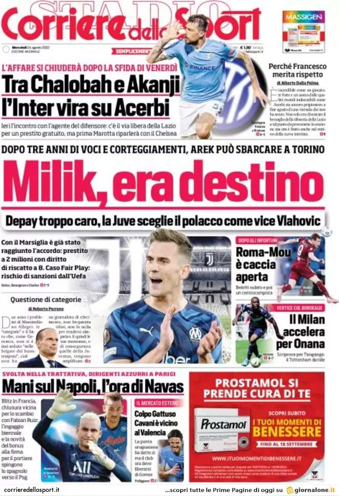 PRIMA PAGINA CORRIERE - Mani sul Napoli, l'ora di Navas. Blitz in Francia