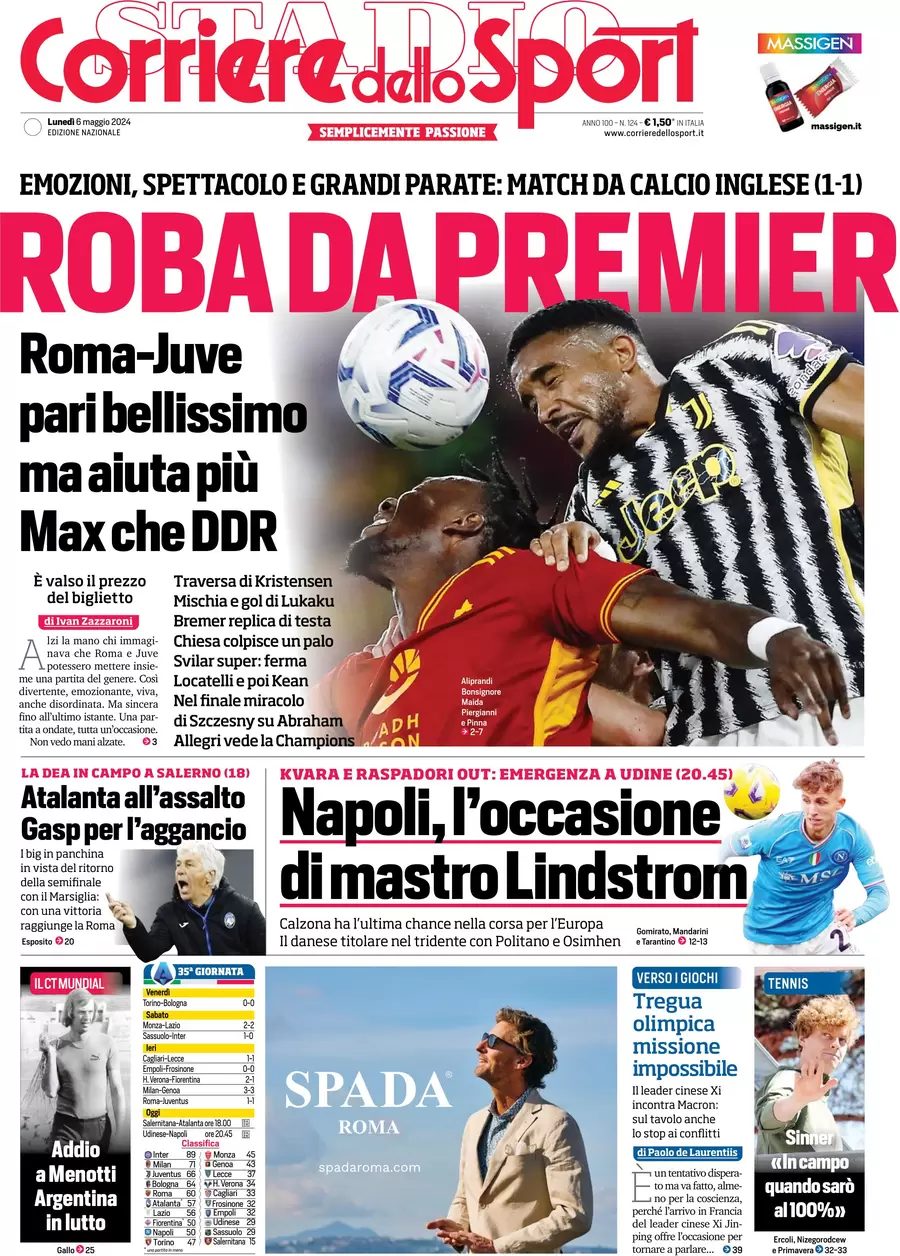 PRIMA PAGINA CORRIERE - Napoli, l'occasione di mastro Lindstrom