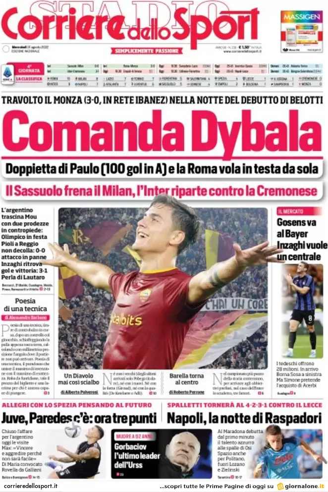 PRIMA PAGINA CORRIERE - Napoli, la notte di Raspadori. Spazio anche per Politano