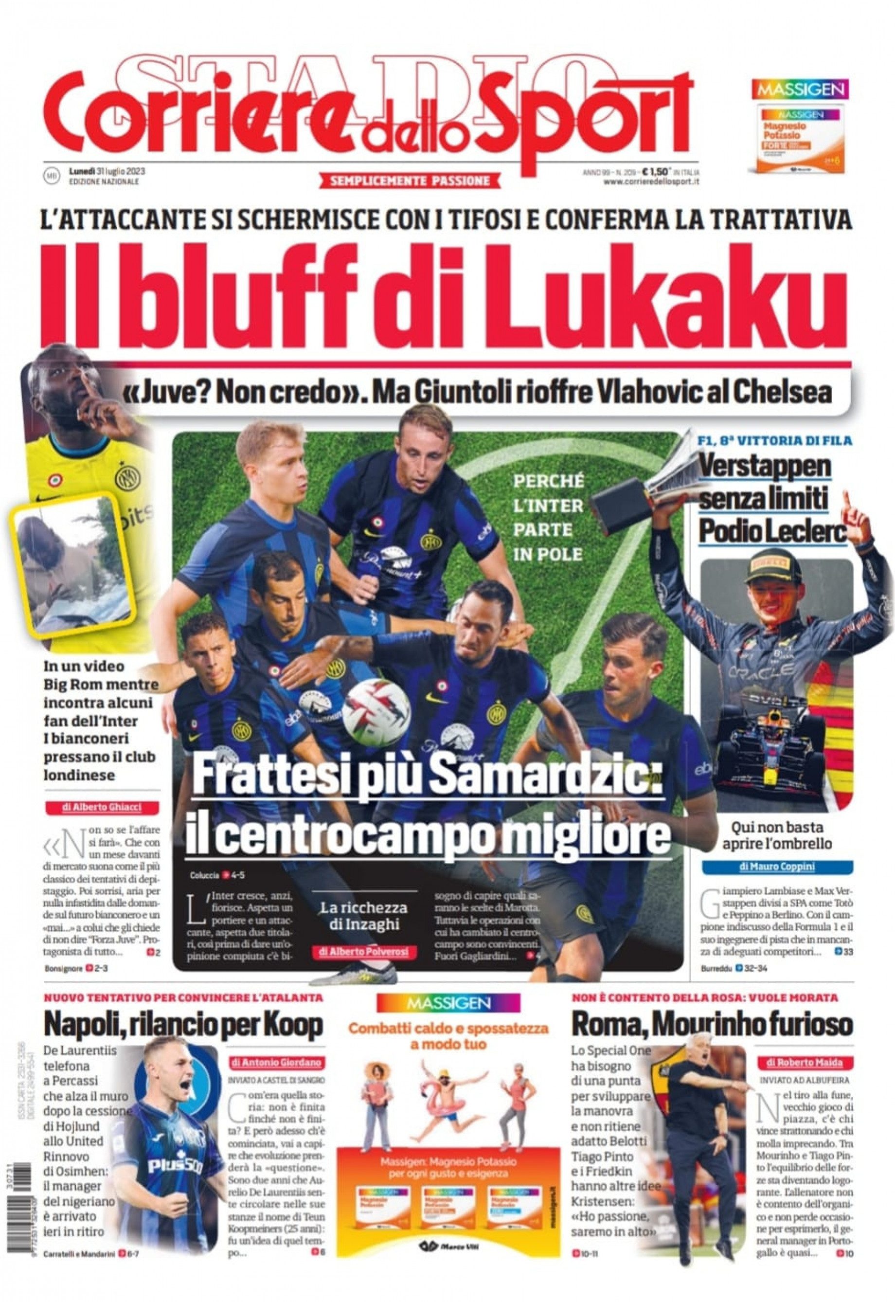 PRIMA PAGINA CORRIERE - Napoli, rilancio per Koopmeiners. ADL chiama Percassi