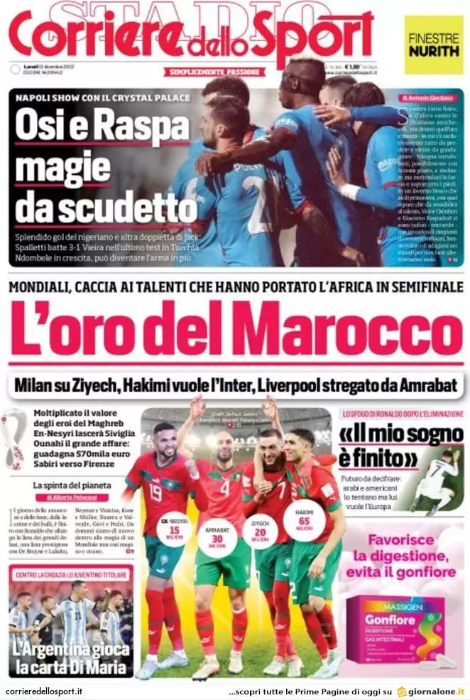 La prima pagina del noto quotidiano si sofferma sui temi più caldi del momento relativi al calcio italiano e non solo.