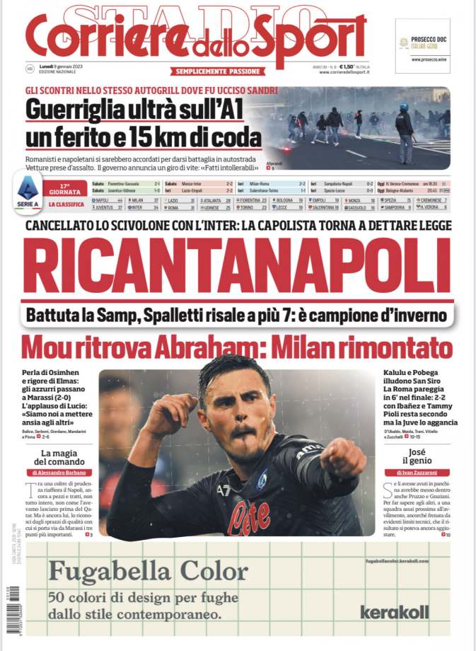 PRIMA PAGINA CORRIERE - RicantaNapoli: la capolista detta legge