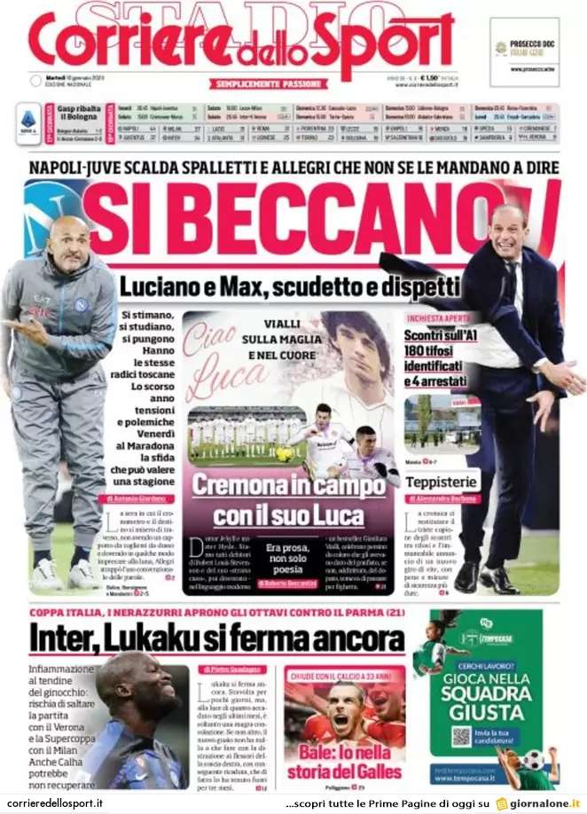 PRIMA PAGINA CORRIERE - Si beccano! Luciano e Max, scudetto e dispetti