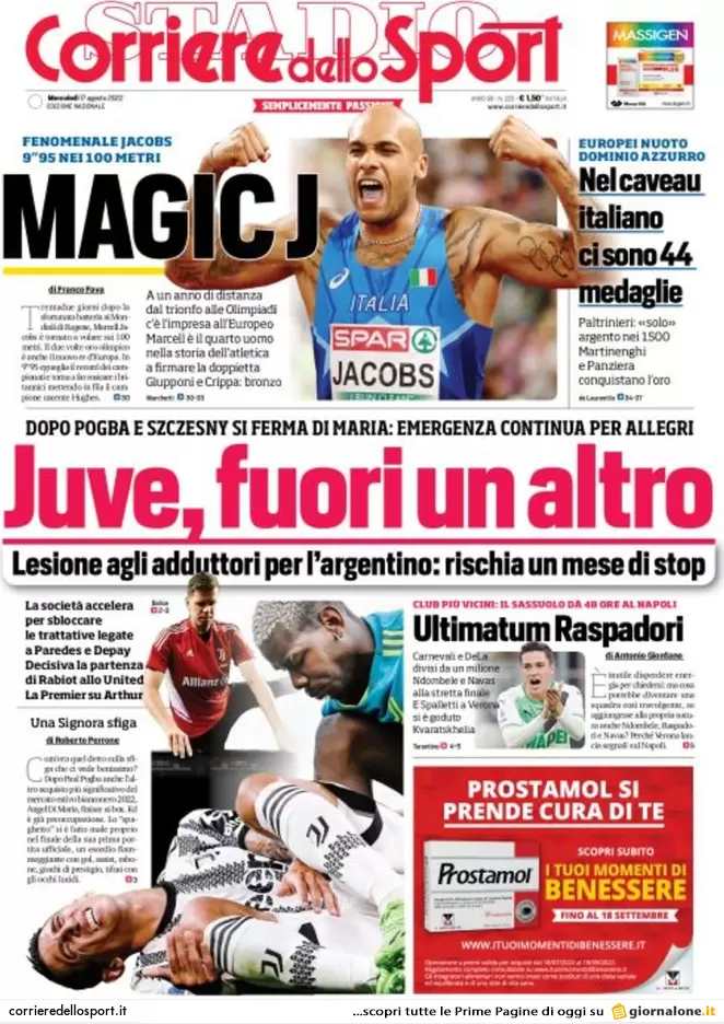 PRIMA PAGINA CORRIERE - Ultimatum Raspadori: 48 ore. Ndombele-Navas, stretta finale