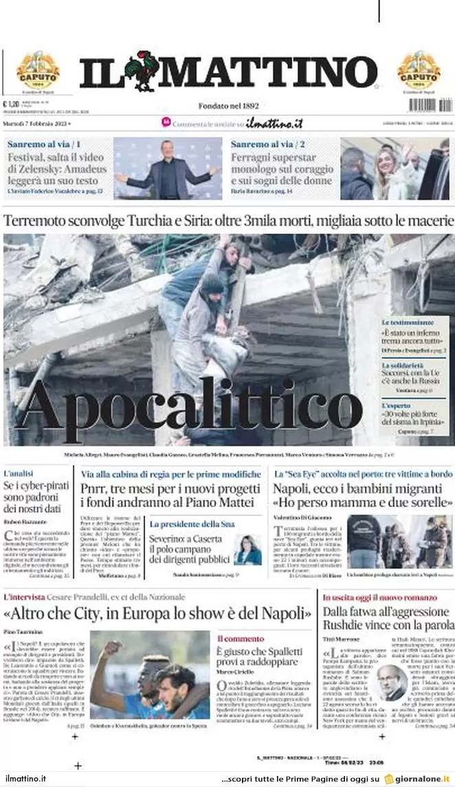 "Altro che City, in Europa lo show è del Napoli", titola l'edizione odierna de Il Mattino in merito all'intervista rilasciata da Cesare Prandelli al quotidiano campano.