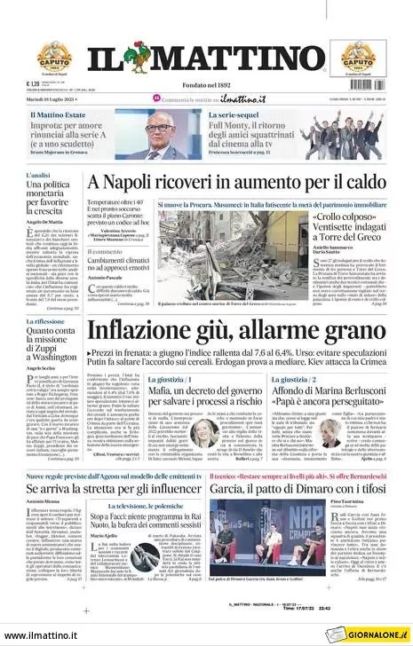 "Garcia, il patto di Dimaro con i tifosi", titola l'edizione odierna de Il Mattino in merito alle dichiarazioni di Rudi Garcia rilasciate a Dimaro in occasione dell'incontro con i tifosi azzurri.