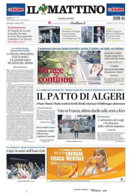 "Il Napoli di Conte prende forma: arriva Buongiorno, Lukaku è in attesa", titola in prima pagina l'edizione odierna de Il Mattino parlando del calciomercato azzurro con il primo acquisto dal Torino definito, mentre per l'attaccante ci sarà ancora da aspettare.