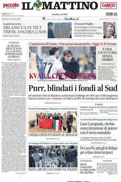 PRIMA PAGINA IL MATTINO - Kvara, che delusione. L'amarezza di Conte: "Non posso incatenarlo"