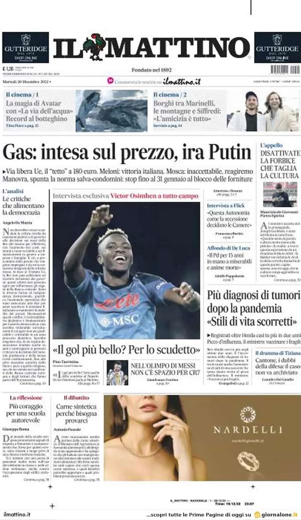 PRIMA PAGINA IL MATTINO - Osimhen a tutto campo: "Il gol più bello? Per lo Scudetto"