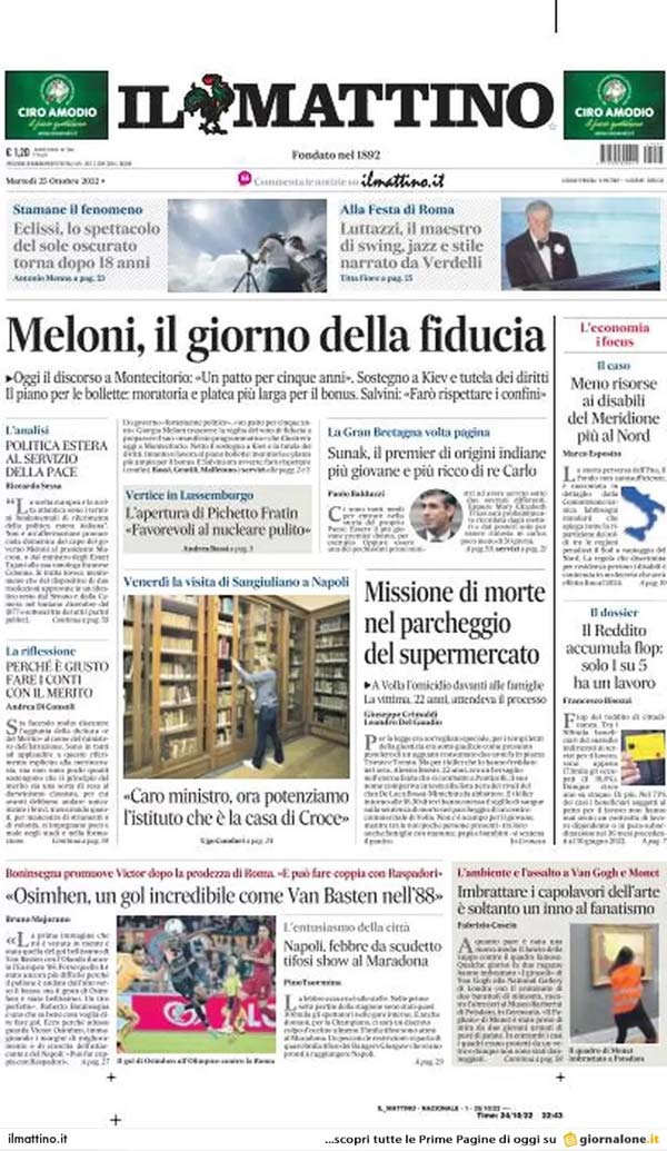 PRIMA PAGINA IL MATTINO - "Osimhen, un gol incredibile come Van Basten nell'88"