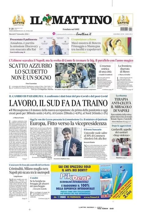 PRIMA PAGINA IL MATTINO - Scatto azzurro, lo Scudetto non è un sogno