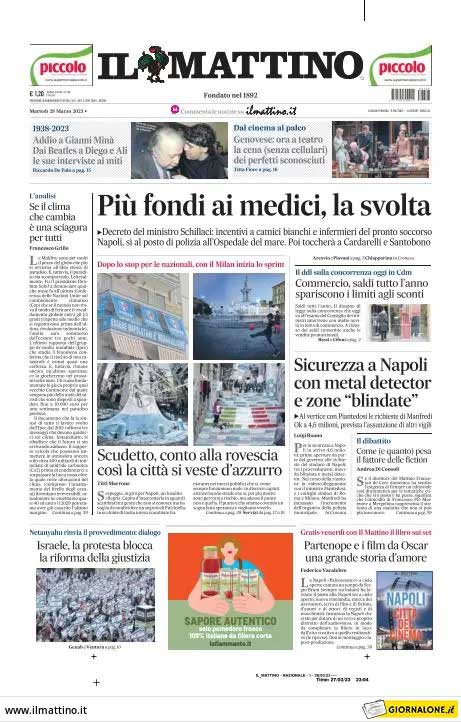 PRIMA PAGINA IL MATTINO - Scudetto, conto alla rovescia: così la città si vede d'azzurro