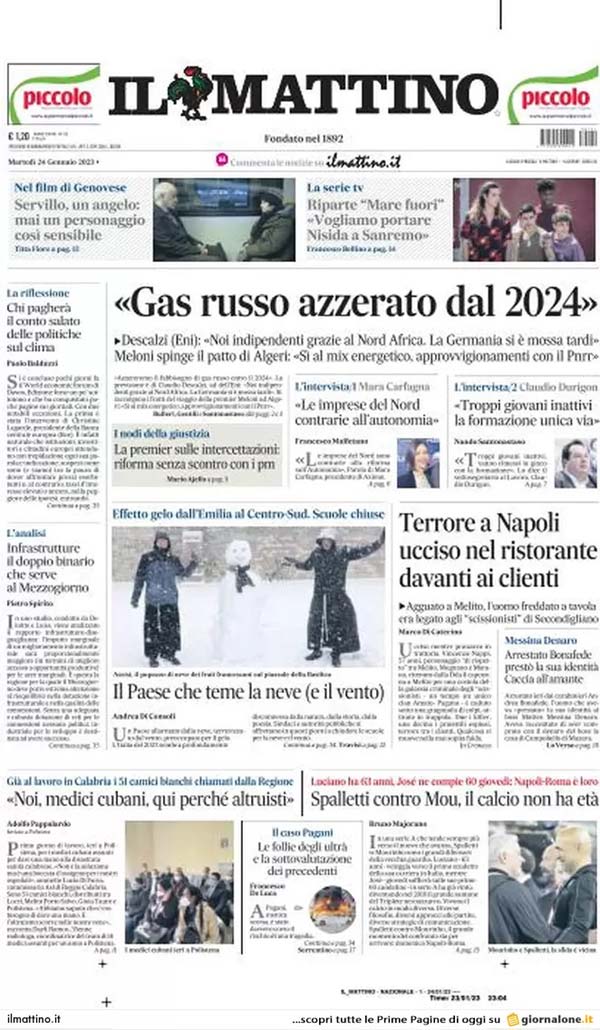 PRIMA PAGINA IL MATTINO - Spalletti contro Mou, il calcio non ha età