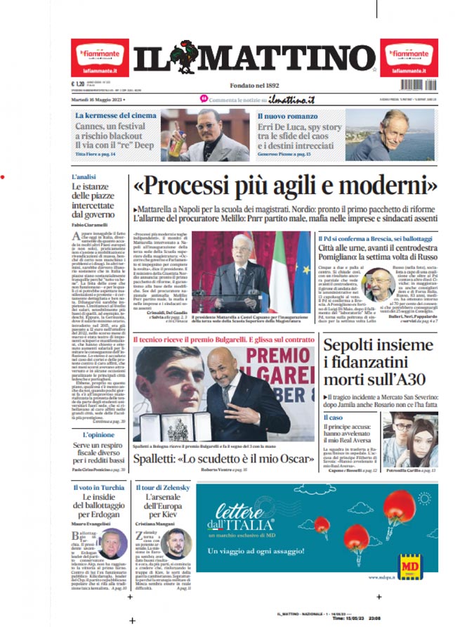 PRIMA PAGINA IL MATTINO - Spalletti: "Lo Scudetto è il mio Oscar"