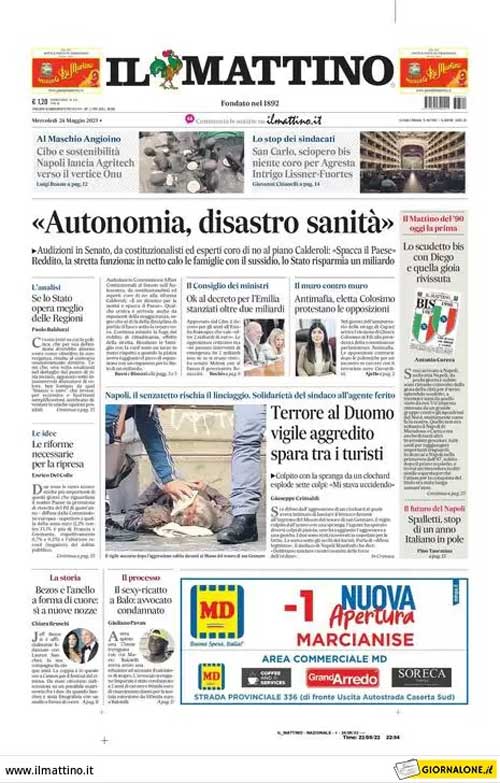 PRIMA PAGINA IL MATTINO - Spalletti, stop di un anno. Italiano in pole