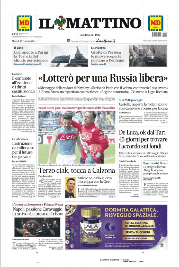 PRIMA PAGINA IL MATTINO - Terzo ciack, tocca a Calzona. Napoli senza pace