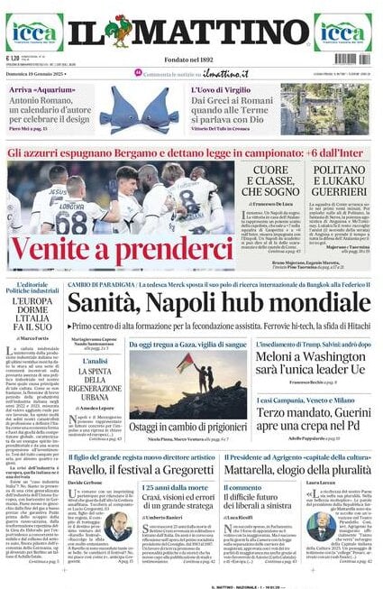 "Venite a prenderci. Gli azzurri espugnano Bergamo e dettano legge in campionato", titola l'edizione odierna de Il Mattino in merito alla vittoria del Napoli sul campo dell'Atalanta.