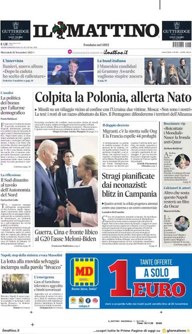 Sono tanti gli spunti che arrivano dalla prima pagina de Il Mattino. Il noto quotidiano si sofferma su alcuni degli argomenti più caldi del momento. Ecco alcuni titoli dell'ultima edizione: "Altro che sosta, questo Napoli resterà un film da Oscar", si legge in merito allo sport.