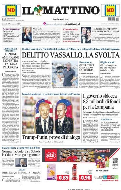 Sono tanti gli spunti che arrivano dalla prima pagina de Il Mattino. Il noto quotidiano si sofferma su alcuni degli argomenti più caldi del momento. Ecco alcuni titoli dell'ultima edizione: "Il Napoli al Meazza per ipotecare il futuro". E ancora: "L'interista doc: Amadeus, derby del cuore con la moglie napoletana" si legge nello spazio dedicato allo sport.