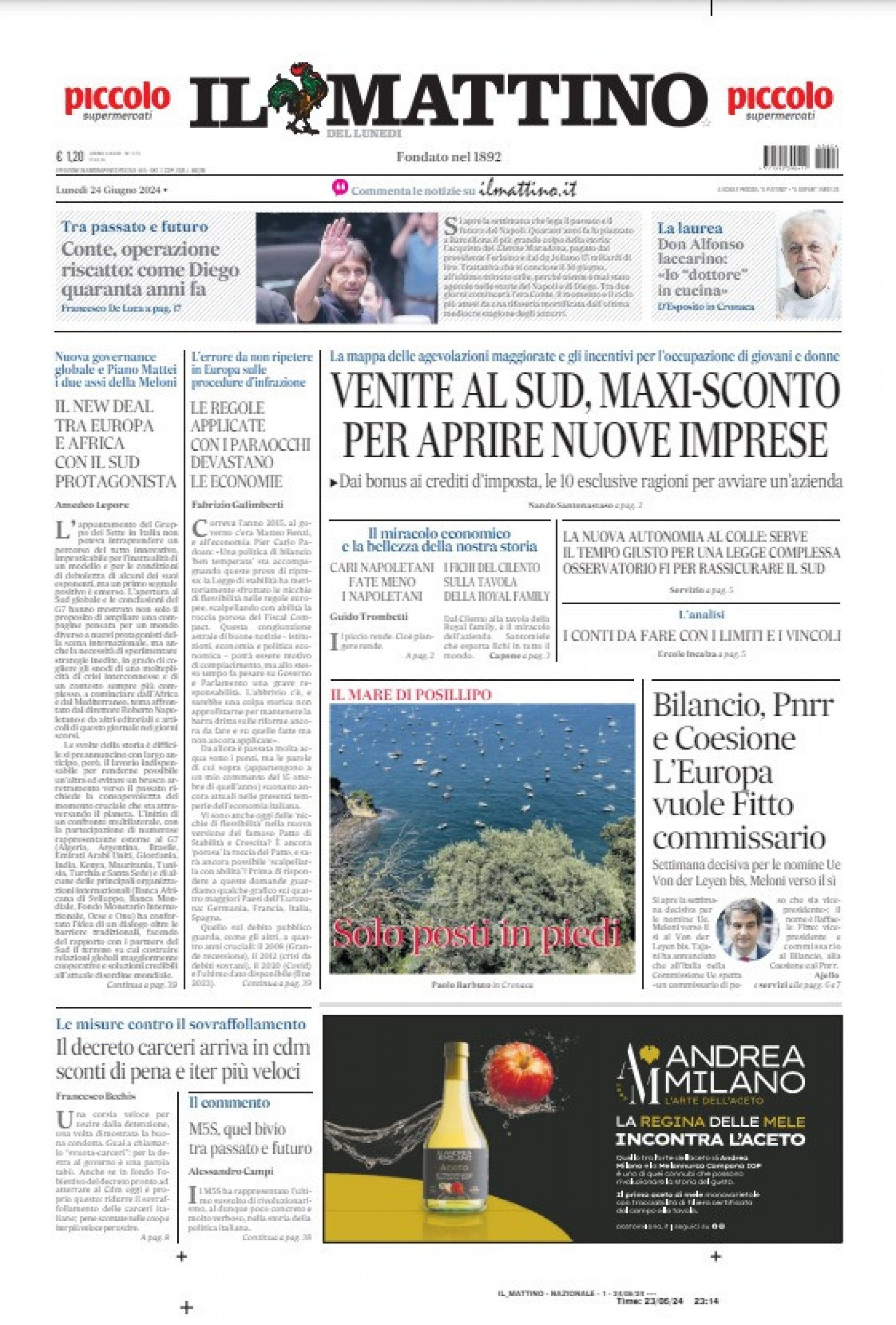 PRIMA PAGINA MATTINO - Conte, operazione riscatto: come Diego 40 anni fa