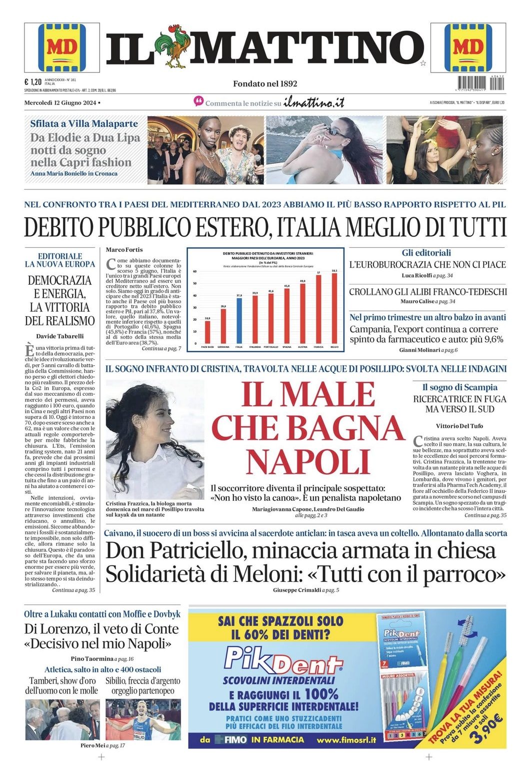 Sono tanti gli spunti che arrivano dalla prima pagina de Il Mattino. Il noto quotidiano si sofferma su alcuni degli argomenti più caldi del momento. Ecco alcuni titoli dell'ultima edizione: "Di Lorenzo, il veto di Conte: decisivo nel mio Napoli. Oltre a Lukaku, contatti con Moffi e Dovbyk" si legge nello spazio dedicato allo sport.