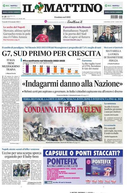 Sono tanti gli spunti che arrivano dalla prima pagina de Il Mattino. Il noto quotidiano si sofferma su alcuni degli argomenti più caldi del momento. Ecco alcuni titoli dell'ultima edizione: "Mercato, ultimo sprint. Garnacho resta in pole, ma c'è l'idea Amuzu" si legge nello spazio dedicato allo sport.