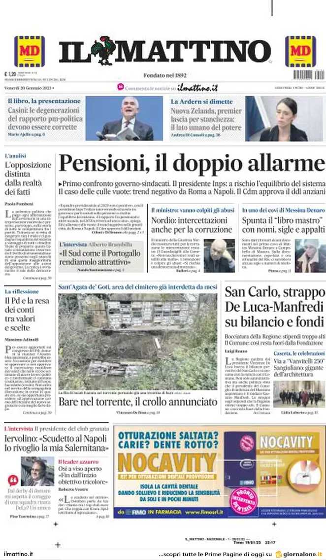 Sono tanti gli spunti che arrivano dalla prima pagina de Il Mattino. Il noto quotidiano si sofferma su alcuni degli argomenti più caldi del momento. Ecco alcuni titoli dell'ultima edizione: "Iervolino: Scudetto al Napoli, io rivoglio la mia Salernitana. Osimhen leader azzurro: fin dall'inizio obiettivo tricolore", si legge in merito allo sport.
