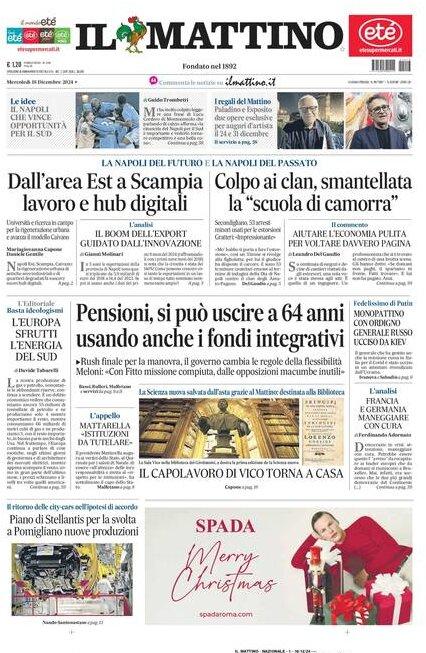 Sono tanti gli spunti che arrivano dalla prima pagina de Il Mattino. Il noto quotidiano si sofferma su alcuni degli argomenti più caldi del momento. Ecco alcuni titoli dell'ultima edizione: "Il Napoli che vince, opportunità per il sud" si legge nello spazio dedicato allo sport.