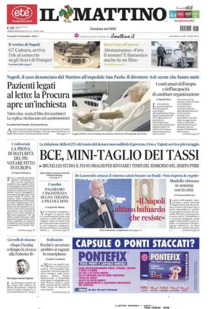 PRIMA PAGINA MATTINO - Il Napoli, ultimo baluardo che resiste. De Laurentiis attacca il sistema