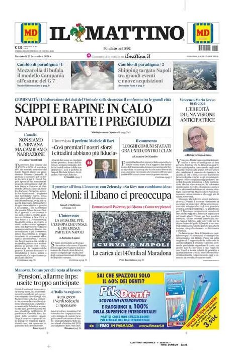 Sono tanti gli spunti che arrivano dalla prima pagina de Il Mattino. Il noto quotidiano si sofferma su alcuni degli argomenti più caldi del momento. Ecco alcuni titoli dell'ultima edizione: "La carica dei 140 mila al Maradona. Domani con il Palermo, poi Monza e Como: tre pienoni" si legge nello spazio dedicato allo sport.