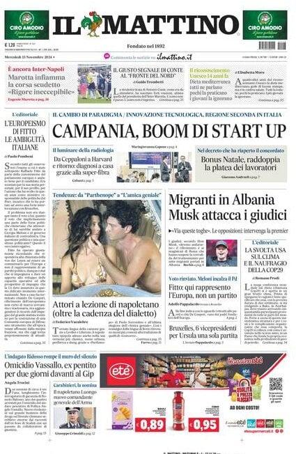 Sono tanti gli spunti che arrivano dalla prima pagina de Il Mattino. Il noto quotidiano si sofferma su alcuni degli argomenti più caldi del momento. Ecco alcuni titoli dell'ultima edizione: "Marotta infiamma la corsa Scudetto: rigore ineccepibile". E ancora: "Il giusto segnale di Conte al fronte del Nord" si legge nello spazio dedicato allo sport.