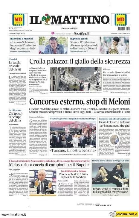 Sono tanti gli spunti che arrivano dalla prima pagina de Il Mattino. Il noto quotidiano si sofferma su alcuni degli argomenti più caldi del momento. Ecco alcuni titoli dell'ultima edizione: "Meluso: io, a caccia di campioni per il Napoli. Il ds erede di Giuntoli: non sono tifoso della Juve" si legge nel trafiletto dedicato allo sport.