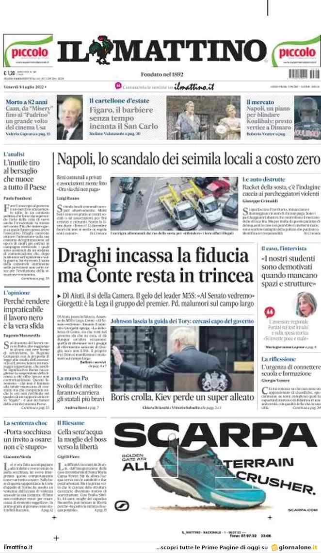 Sono tanti gli spunti che arrivano dalla prima pagina de Il Mattino. Il noto quotidiano si sofferma su alcuni degli argomenti più caldi del momento. Ecco alcuni titoli dell'ultima edizione: "Napoli, piano per blindare Koulibaly: presto vertice a Dimaro", si legge in merito alla politica.