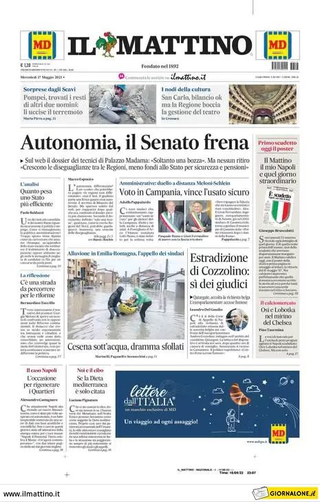 Sono tanti gli spunti che arrivano dalla prima pagina de Il Mattino. Il noto quotidiano si sofferma su alcuni degli argomenti più caldi del momento. Ecco alcuni titoli dell'ultima edizione: "Osi e Lobotka nel mirino del Chelsea" si legge nel trafiletto dedicato allo sport.