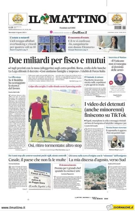 Sono tanti gli spunti che arrivano dalla prima pagina de Il Mattino. Il noto quotidiano si sofferma su alcuni degli argomenti più caldi del momento. Ecco alcuni titoli dell'ultima edizione: "Osi, ritiro tormentato: altro stop. Colpo alla caviglia. E sullo sfondo resta il pressing arabo", si legge nel trafiletto dedicato allo sport.