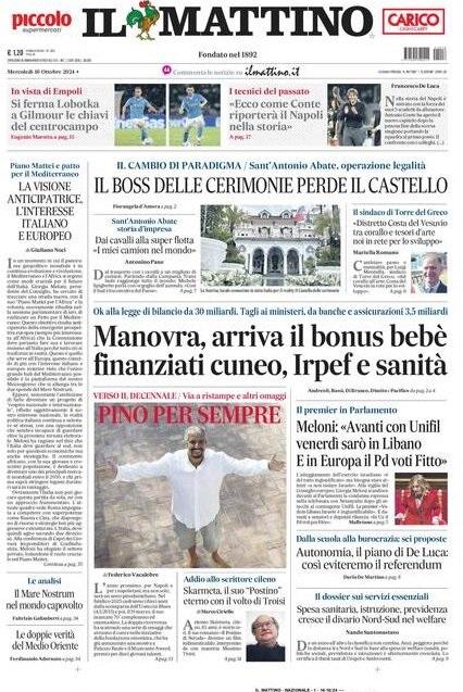 Sono tanti gli spunti che arrivano dalla prima pagina de Il Mattino. Il noto quotidiano si sofferma su alcuni degli argomenti più caldi del momento. Ecco alcuni titoli dell'ultima edizione: "Si ferma Lobotka, a Gilmour le chiavi del centrocampo". E ancora: "Ecco come Conte riporterà il Napoli nella storia" si legge nello spazio dedicato allo sport, in merito al successo del tennista italiano.
