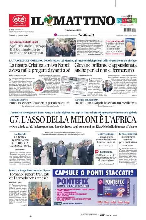 Sono tanti gli spunti che arrivano dalla prima pagina de Il Mattino. Il noto quotidiano si sofferma su alcuni degli argomenti più caldi del momento. Ecco alcuni titoli dell'ultima edizione: "I giorni caldi dello Sport. Spalletti vuole l'Europa. E al Quirinale parte la missione Olimpiadi" si legge nello spazio dedicato allo sport.