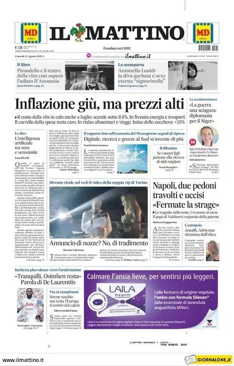 Sono tanti gli spunti che arrivano dalla prima pagina de Il Mattino. Il noto quotidiano si sofferma su alcuni degli argomenti più caldi del momento. Ecco alcuni titoli dell'ultima edizione: "Tranquilli, Osimhen resta. Parola di De Laurentiis", si legge nel trafiletto dedicato allo sport.