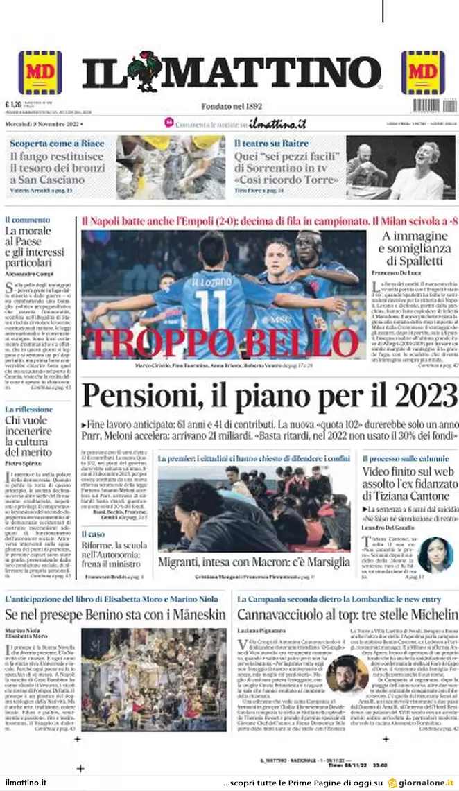 PRIMA PAGINA MATTINO - Troppo bello. Napoli a immagine e somiglianza di Spalletti